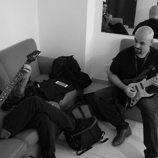 O claro e o escuro, o silêncio e o som, o sim e o não, a terra e o céu, enfim, muitas são as antíteses que formam nossas vidas, e o que não é fotografar senão congelar movimentos etéreos em imagens estáticas? A questão é que cada etapa do processo fotográfico possui inúmeras variáveis, cujo caminho e escolhas são sempre pessoais, a depender de quem fotografa. Até o momento decisivo da captura de uma cena muitas opções foram consideradas, desde ângulos, posicionamentos, incidências de luzes, movimentos de pessoas, espontaneidades, enfim, uma infinidade de fatores que influenciam no resultado final. Quantas vezes não deparamos com uma fotografia e verificamos que a cena real não era dotada do mesmo encantamento? O contrário também pode ocorrer. Nesse passo, não é difícil concluir que viajar com um profissional de imagens é muito importante para qualquer banda, porque a documentação do show e os momentos do entorno são fundamentais. O modo como Trojan trabalha, sempre calmo e solícito, atento a todas as movimentações no palco - muitas vezes dando a impressão de possuir o dom da ubiquidade -, e os resultados notáveis de sua atuação, leva-me a crer que suas lentes são mágicas. Todavia, sinceramente, sei que o foco é outro, não se trata apenas de equipamento, mas sim de quem o manuseia, e então a magia pode acontecer.